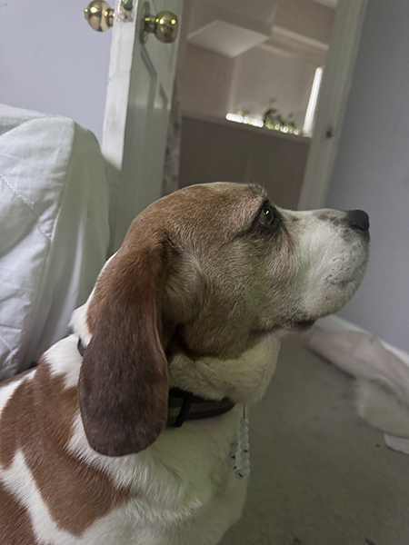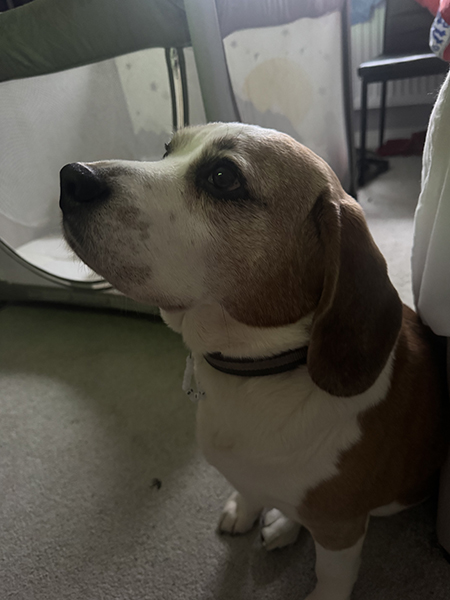Elvis is a typical beagle with a curious and playful nature.