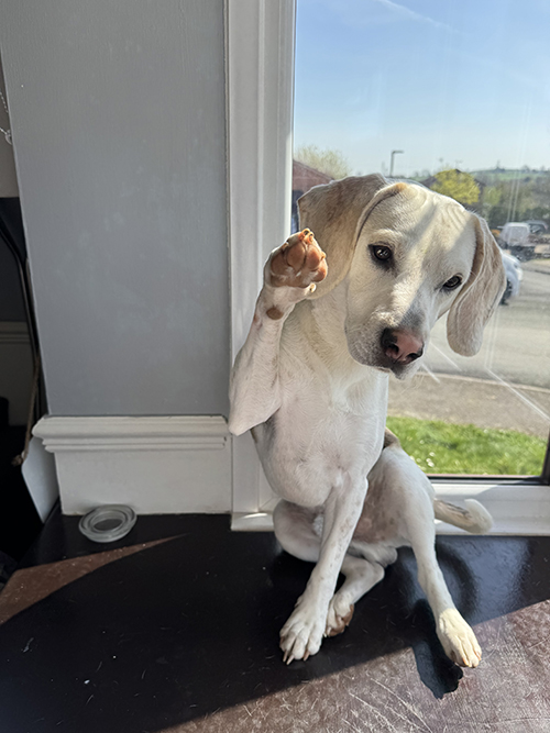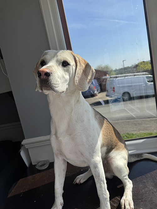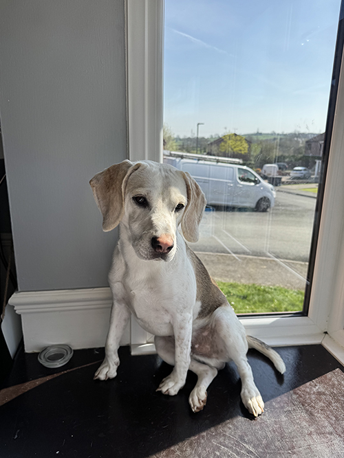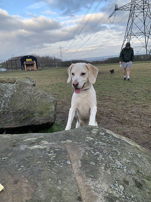 Snoopy wears a harness and enjoys his walks, although he can pull a little on the lead. Like many Beagles, his recall is not reliable, so he cannot currently be let off lead.