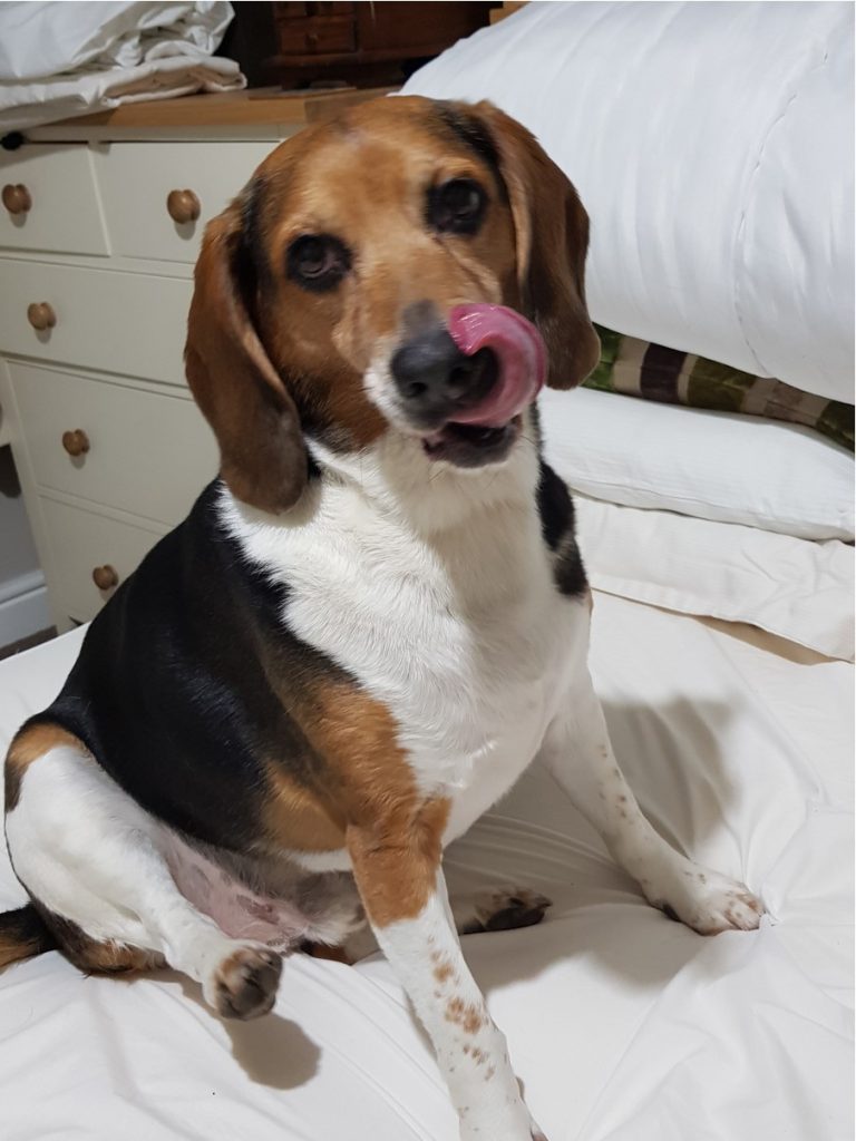 Harry came to live with us in the January of 2017 when we rehomed him from our nephew – who adopted him from beagle welfare when he was a puppy. Harry was such a character and amazing dog. He love food like most beagles do especially meat, pasta, cheese and especially something random or mouldy found on streets or woods !! Harry was great at helping with chores particularly pre wash for any dies in the dishwasher. He was especially good at cleaning burnt on food 😊