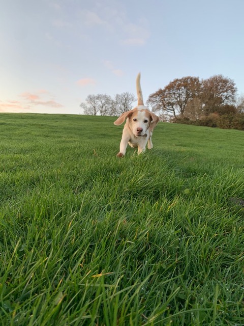 For the first two years Louie looked so lost and bewildered. He seemed so unsure about how to be a free beagle and how to enjoy his beagle senses. Slowly he began to love his daily walks, so much so he would start baying at us if we were keeping him waiting! On his walks he made lots of doggy friends to run freely with. Everyone knew when Louie had arrived, they could hear him a mile off! His personality began to shine through, he knew he was part of our family, we were his pack buddies and he loved us and we loved him.