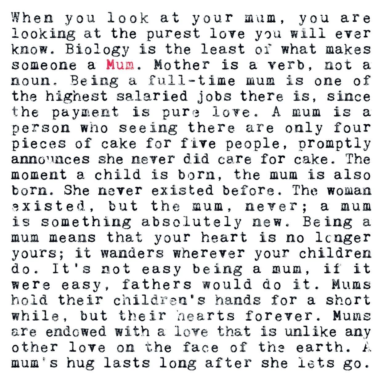 Celebrate the wisdom and warmth of a wonderful Mum with this beautifully simple unframed print — a thoughtful gift for the one who means the world.